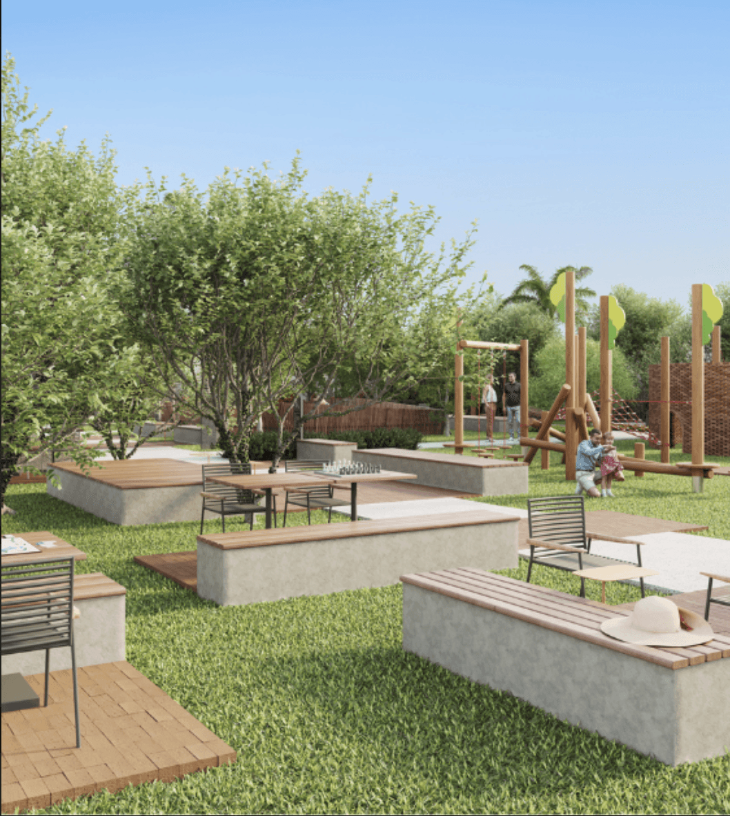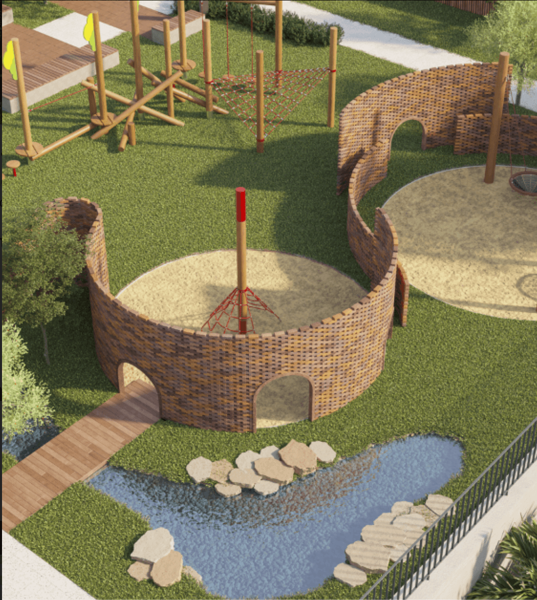 Diferente dos playgrounds convencionais, o Parquinho Naturalizado do Avenida 105 foi projetado para estimular a criatividade das crianças, permitindo que a natureza seja parte essencial da brincadeira. Aqui, não há brinquedos que ditam regras. Em vez disso, troncos, cordas, madeira e areia convidam os pequenos a explorar, criar e interagir livremente com o ambiente.