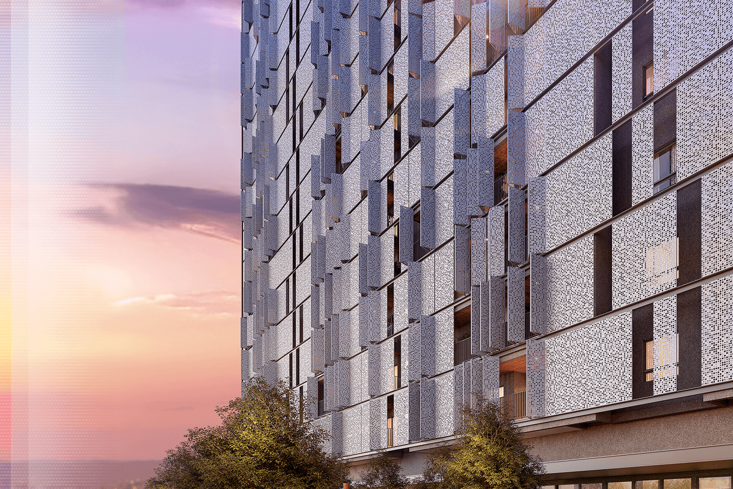 FACHADA COM BRISES METÁLICOS PERFURADOS